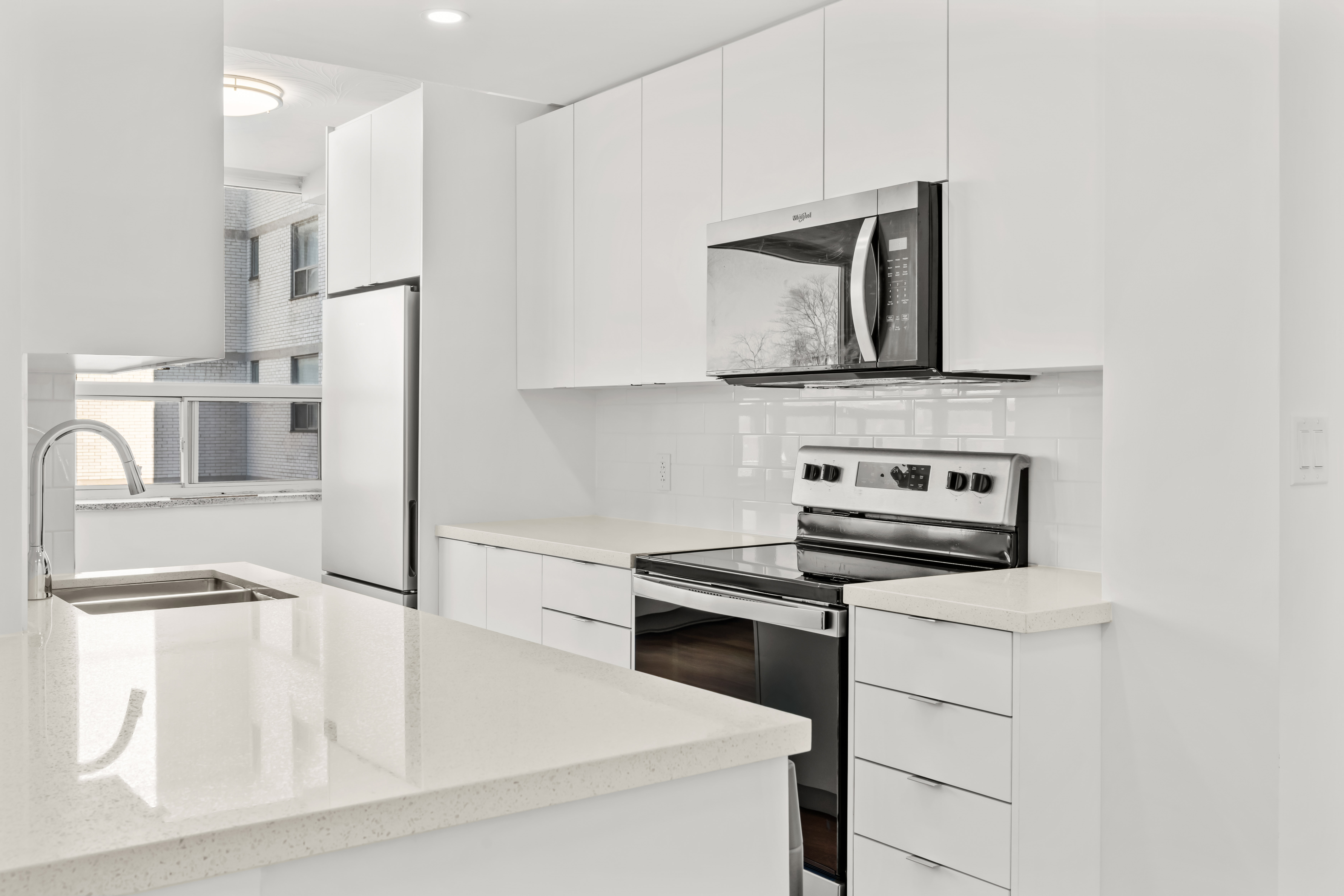 These spacious apartments feature well-thought-out layouts, beautifully renovated with stainless steel appliances, chic bathrooms, and stylish blinds for all windows, ensuring a modern and comfortable living space.