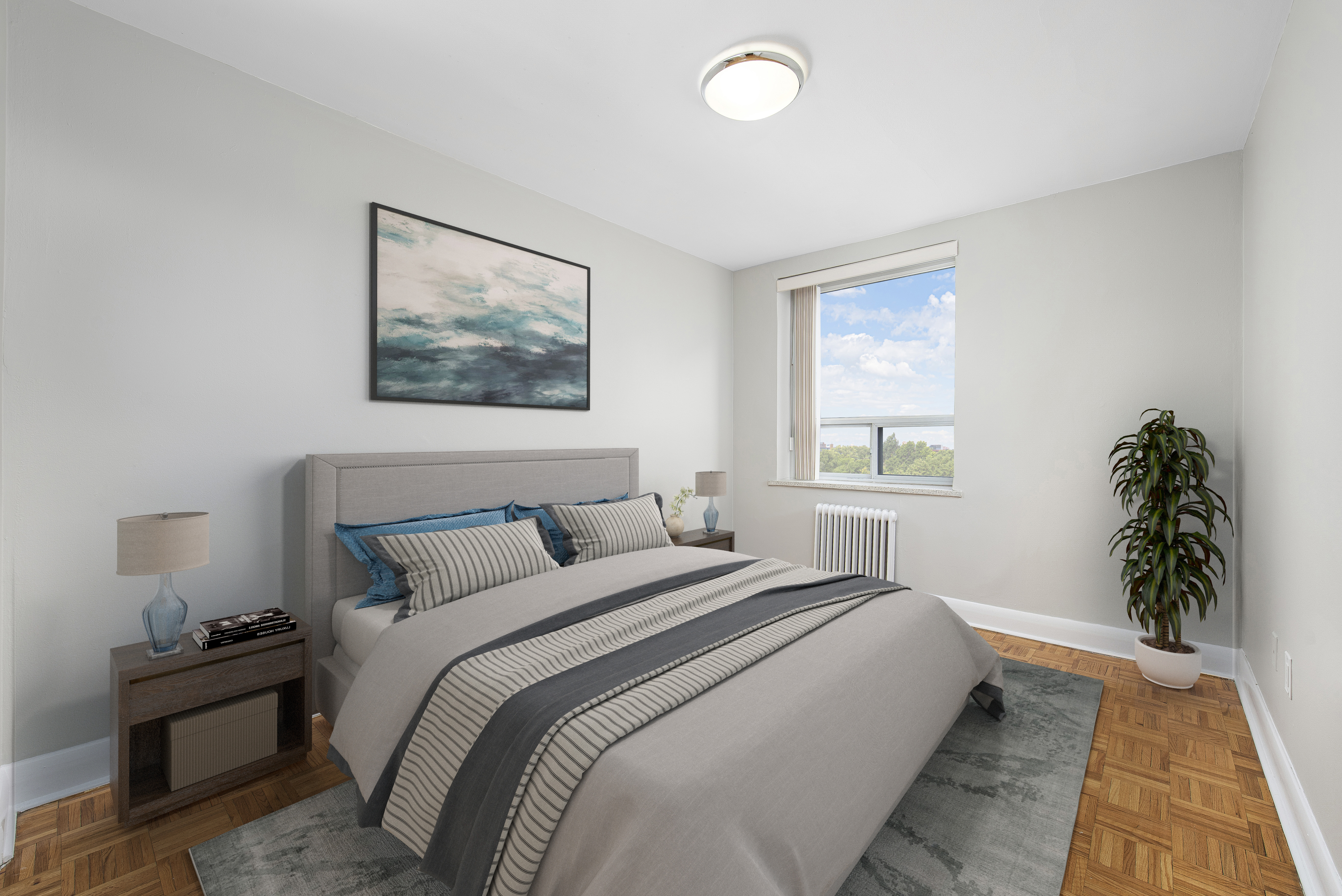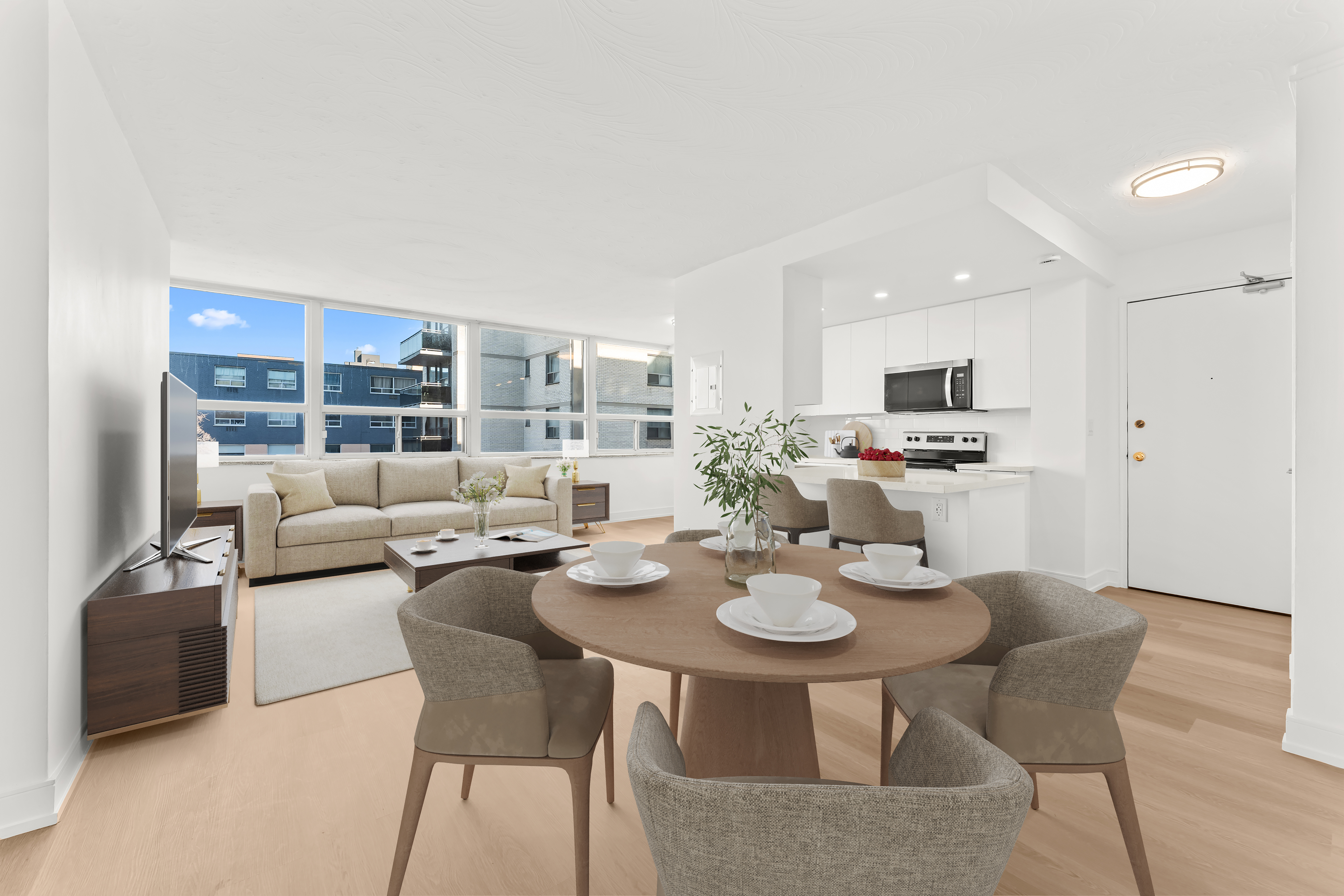 These spacious apartments feature well-thought-out layouts, beautifully renovated with stainless steel appliances, chic bathrooms, and stylish blinds for all windows, ensuring a modern and comfortable living space.